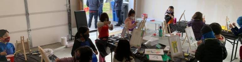 Then, thanks to the birthday party hosted by Nanaji and Naniji, we created a little art studio in our garage (heaters worked!) and everyone had a good time.