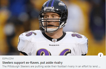 What Todd Heap is going through, I can’t fathom. I read his story and got bleary eyed. I simply can’t fathom it. This story, was a nice jolt of feel good good gesturing. The Steelers and the Ravens are, bitter rivals. To hear fans talk about the other team, and the other fans, would make you question and wonder whether NFL Football fandom is healthy. But then you read this article.
