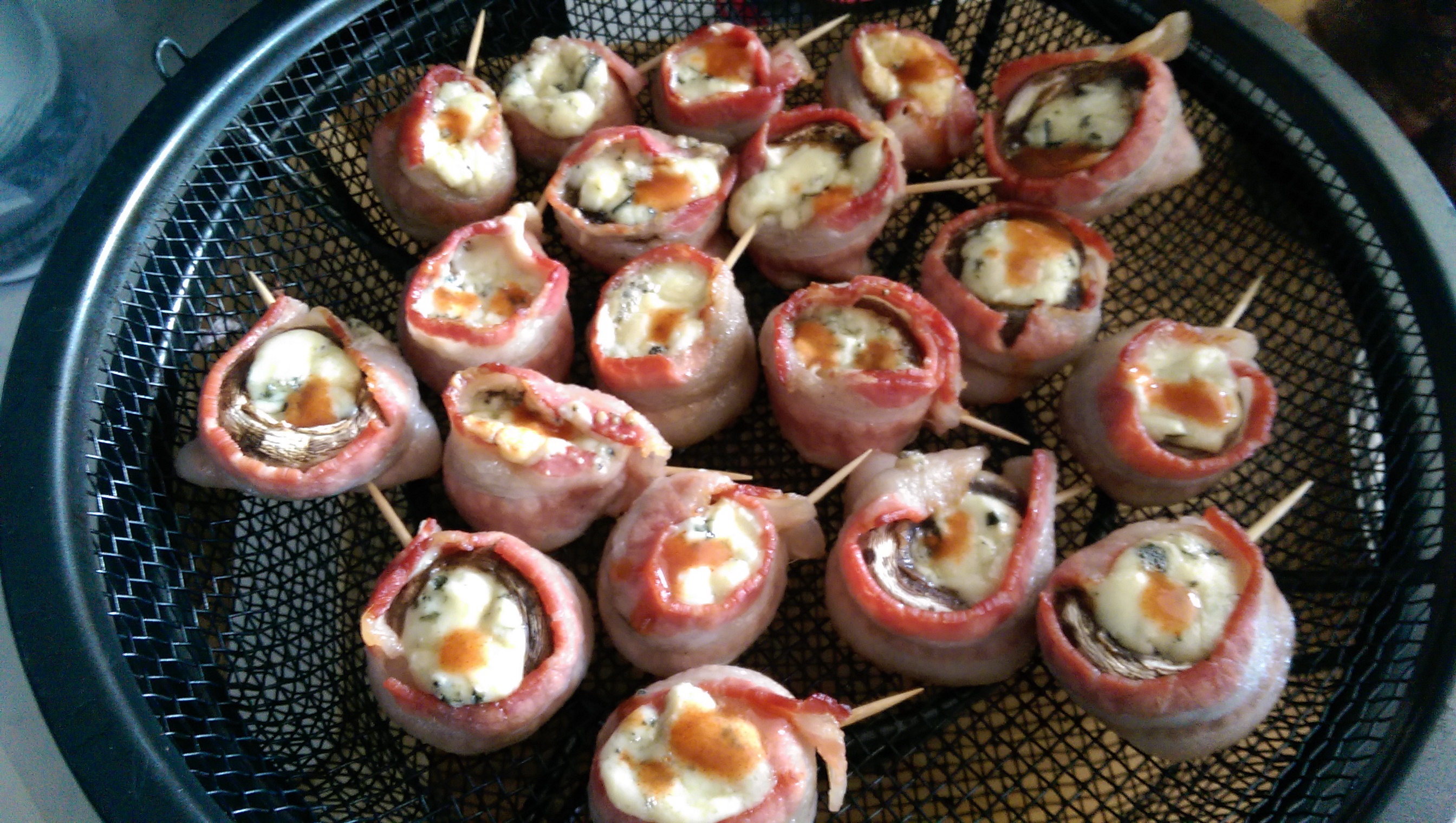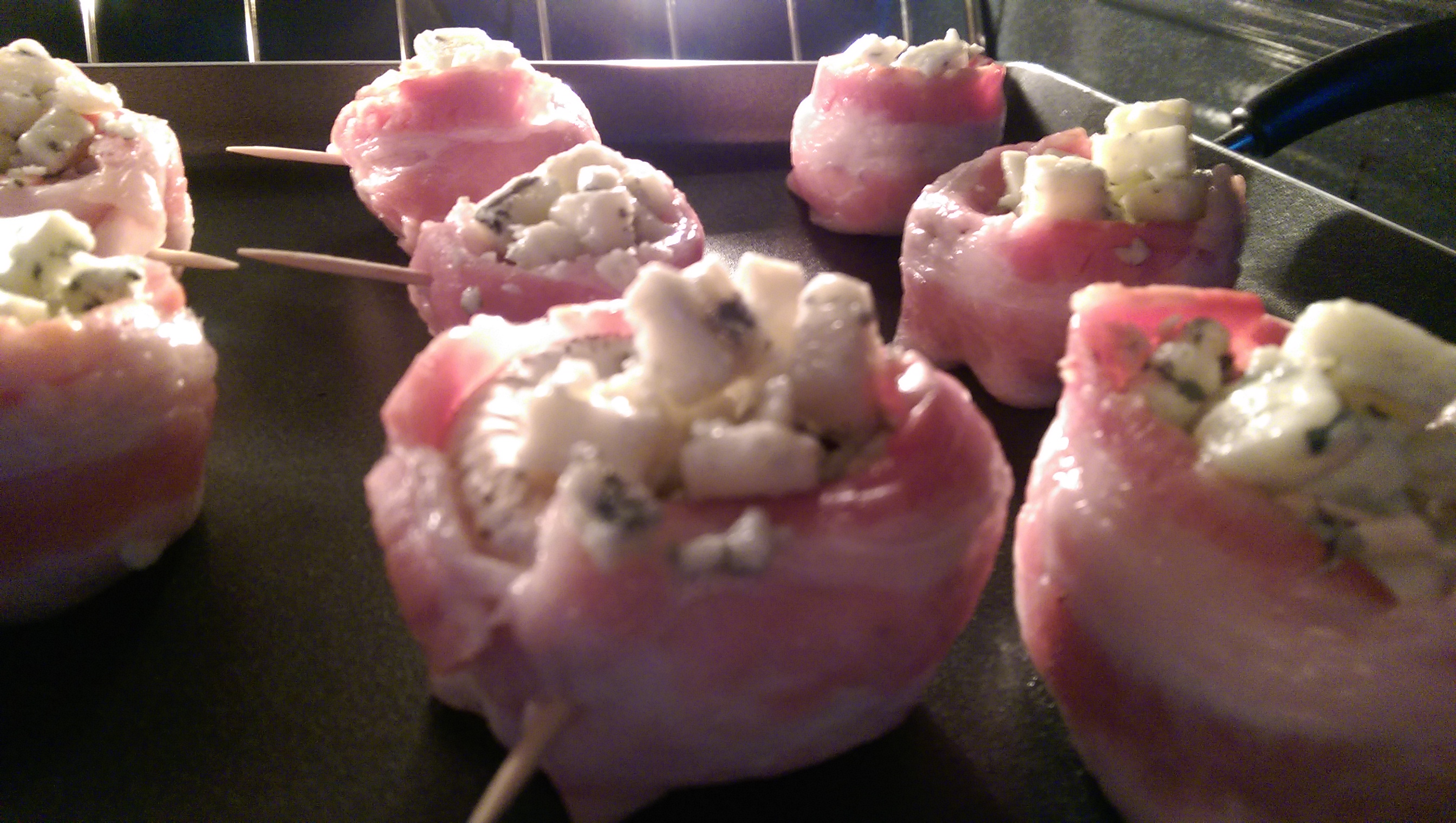 - Mushrooms – Clean the heck out of the caps. Lightly season them with salt and pepper. Lightly brush them with olive oil. Bake them on 350 for 15 minutes. Expect them to sweat out quite a bit of water so get a plan with some lip. After these have cooked, save the excreted mushroom water in a separate bowl and then put the Mushrooms on a plate, covered.