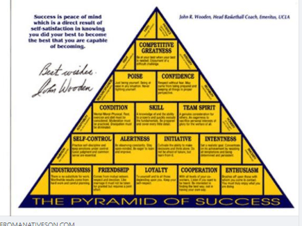 It resonated. Not only the pyramid and its layers and levels, but his definition of success. “Success is peace of mind which is a direct result of self-satisfaction in knowing you did your best to become the best that you are capable of being.”